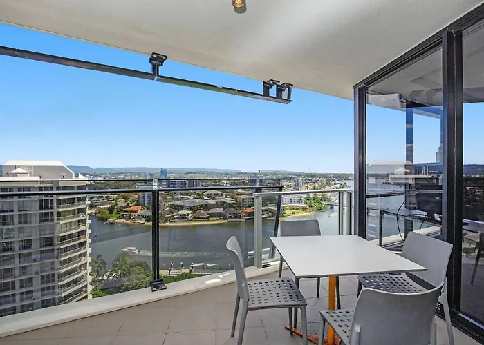 寝室1室のCentral And Scenic Riverside Retreat At Surfers ゴールドコーストアパートはリプリーズ・ビリーブ・イット・オア・ノット!から歩いて5分の場所にあります。 キャビル・アベニューすぐ近くのこの94m²のアパートに、屋内プール、サウナ、サウナ とサウナがあります。
